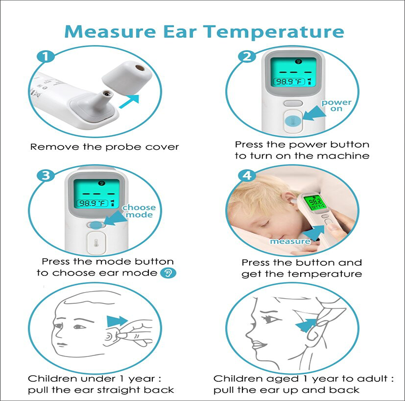 - 2 MODE READINGS: You can read safely and accurately the temperature on the forehead or in the ear.