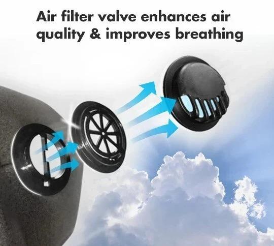 Made of soft cotton mesh for excellent breathability and extra comfort. Dual Air Valve Respirator for improved and easier breathing. Doesn't get hot inside the mask and prevents glasses fogging.
