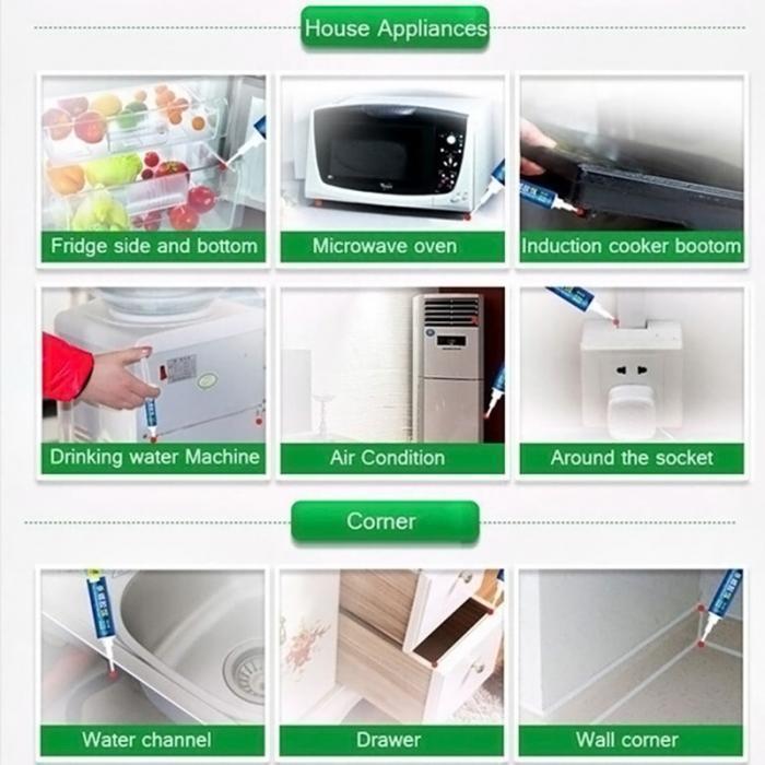 To defend your home and family against roaches, use the built-in applicator to squeeze a small amount wherever roaches like to hide, such as cracks and crevices.